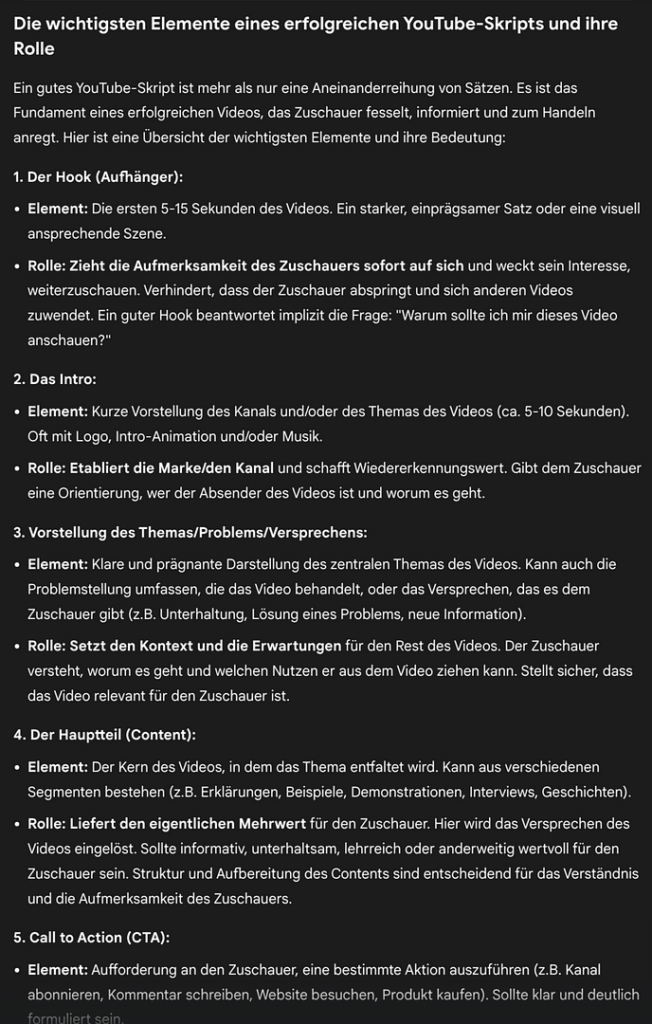 1. Zuerst fragen wir Google Gemini nach der Grundstruktur eines YouTube-Skripts: