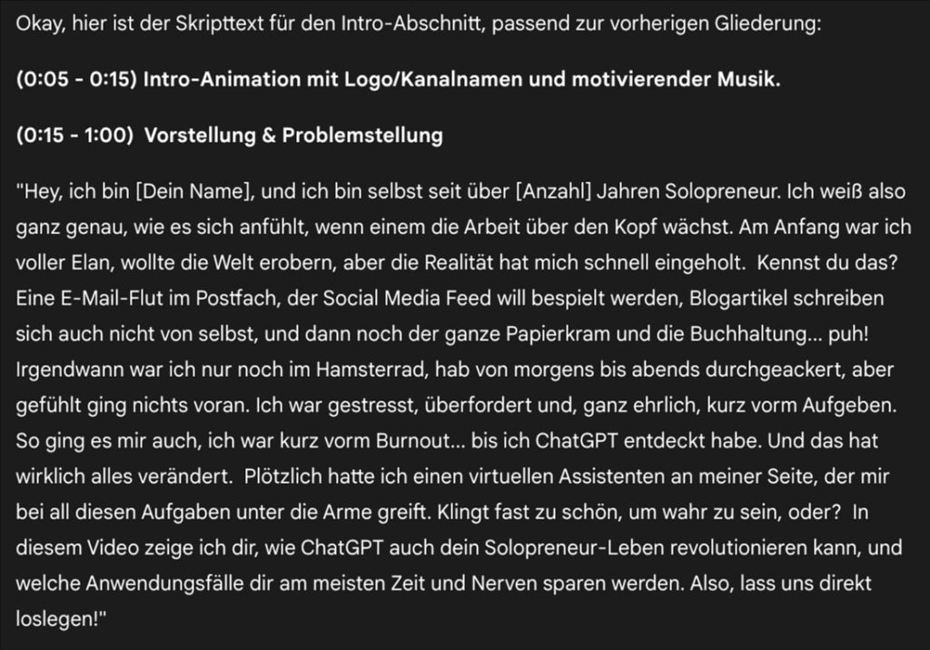 8. Gemini liefert uns professionelle Skripttexte, wie diesen für die Intro: